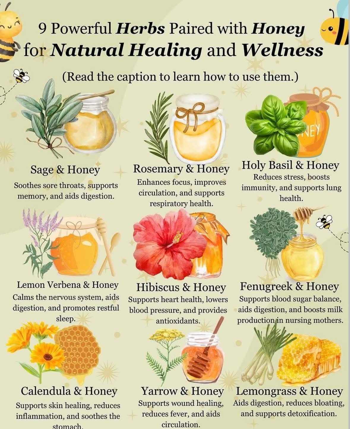 🤎Holy Basil (Tulsi) & Honey - Stir into tea to reduce stress and support immunity.